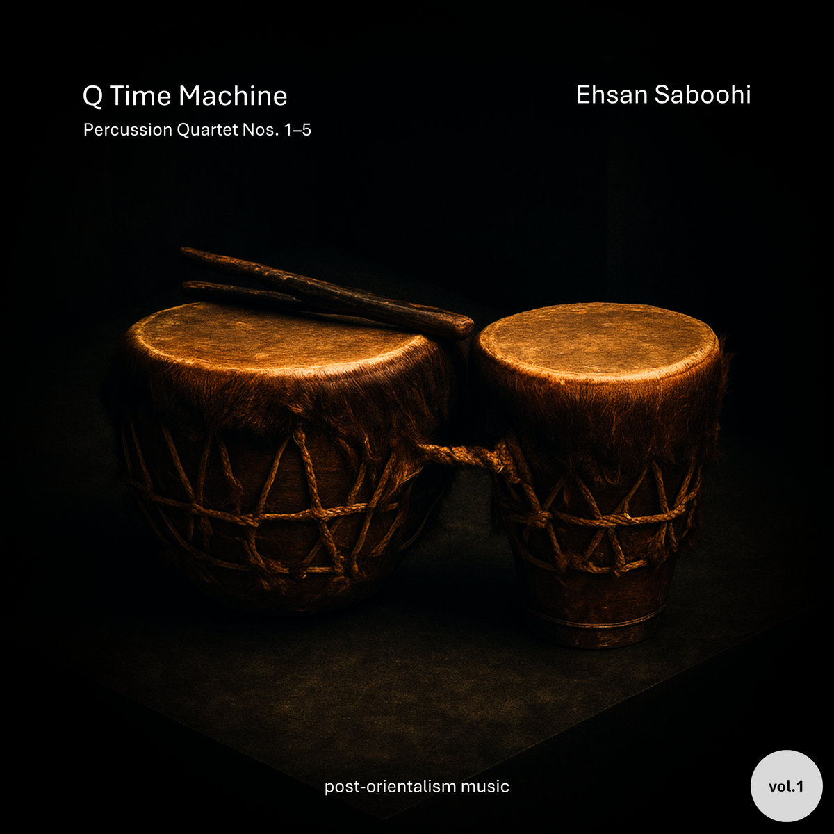 Ein Q entspricht exakt 0,1 Sekunden und dient als kleinster Zeitbaustein innerhalb eines Systems, das auf Taktangaben, Metren oder konventionelle rhythmische Raster vollständig verzichtet. Jeder Performer agiert in seiner eigenen, lokalen Zeit mit individuell festgelegtem Tempo, wodurch ein mehrschichtiges, nicht-lineares Zusammenspiel ohne gemeinsames Pulsmaß entsteht. Zeit wird damit zur relationalen Größe. Die fünf Stücke des Albums sind für vier nicht-melodische Schlaginstrumente geschrieben, die in einer fixen räumlichen Anordnung gespielt werden. Das verwendete Instrumentarium knüpft an die hierzulade wenig bekannten Desarkaten an – ein traditionelles Perkussionsinstrument aus der nordiranischen Region Mazandaran, das heute kaum noch verwendet wird. Damit verbindet sich in diesem Projekt ein theoretisch durchdachtes Zeitkonzept mit einer bewussten Öffnung zur lokalen musikalischen Herkunft. “Q Time Machine. Percussion Quartet Nos. 1–5″ erscheint am 7. September als Download bei Post Orientalism Music. Das Album ist Teil eines größeren Bildungs- und Kompositionsprojekts, das unter anderem Lehrwerke, Videos, Übungen und offene Python-Codes umfasst.