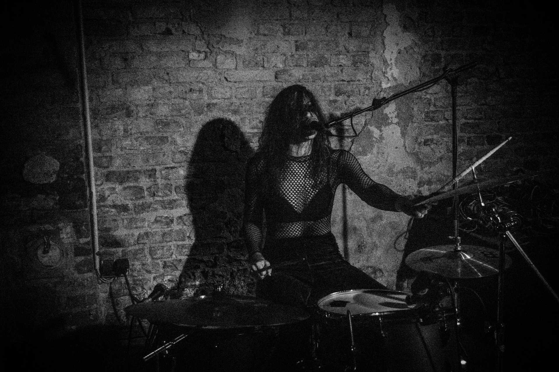 Das Solo am Schlagzeug habe ich Paul Grémare zu verdanken, der das Label Autistic Campaign (Rouen, FR) betreibt und auch eine Kassette von mir veröffentlicht hat. Er lud mich zum Ende der Pandemie zu einem Festival ein – endlich. Ich fragte, mit welchem Projekt ich kommen könnte – er antwortete, welches auch immer ich wolle, aber er fände es toll, wenn ich alleine spiele.