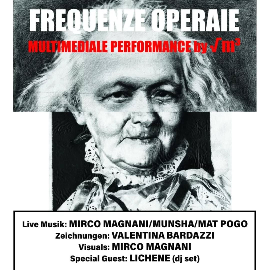 Unter dem Titel Frequenze Operaie versteht sich der Abend laut Programmtext als solidarischer künstlerischer Beitrag zum Thema “Struggle” und verbindet Ausstellung, Performance und Klangkunst zu einem vielschichtigen Erfahrungsraum. Gezeigt werden ikonografische Kompositporträts der bildenden Künstlerin Valentina Bardazzi, begleitet von Live-Interventionen und Echtzeit-Klangbearbeitung der beteiligten Musiker sowie Videoarbeiten von Mirco Magnani. Passend zum Vorabend des Tags der Arbeit tritt dabei Archivmaterial zu Arbeitskämpfen und unterschiedlichen Arbeitsrealitäten in einen Dialog mit der Gegenwart und künstlerischer Praxis generell. Ergänzt wird das Programm durch ein Vinyl-Set von DJ Lichene, das sich klanglich den möglichen Bedeutungen einer fernen Zukunft widmet. Der Eintritt ist frei.