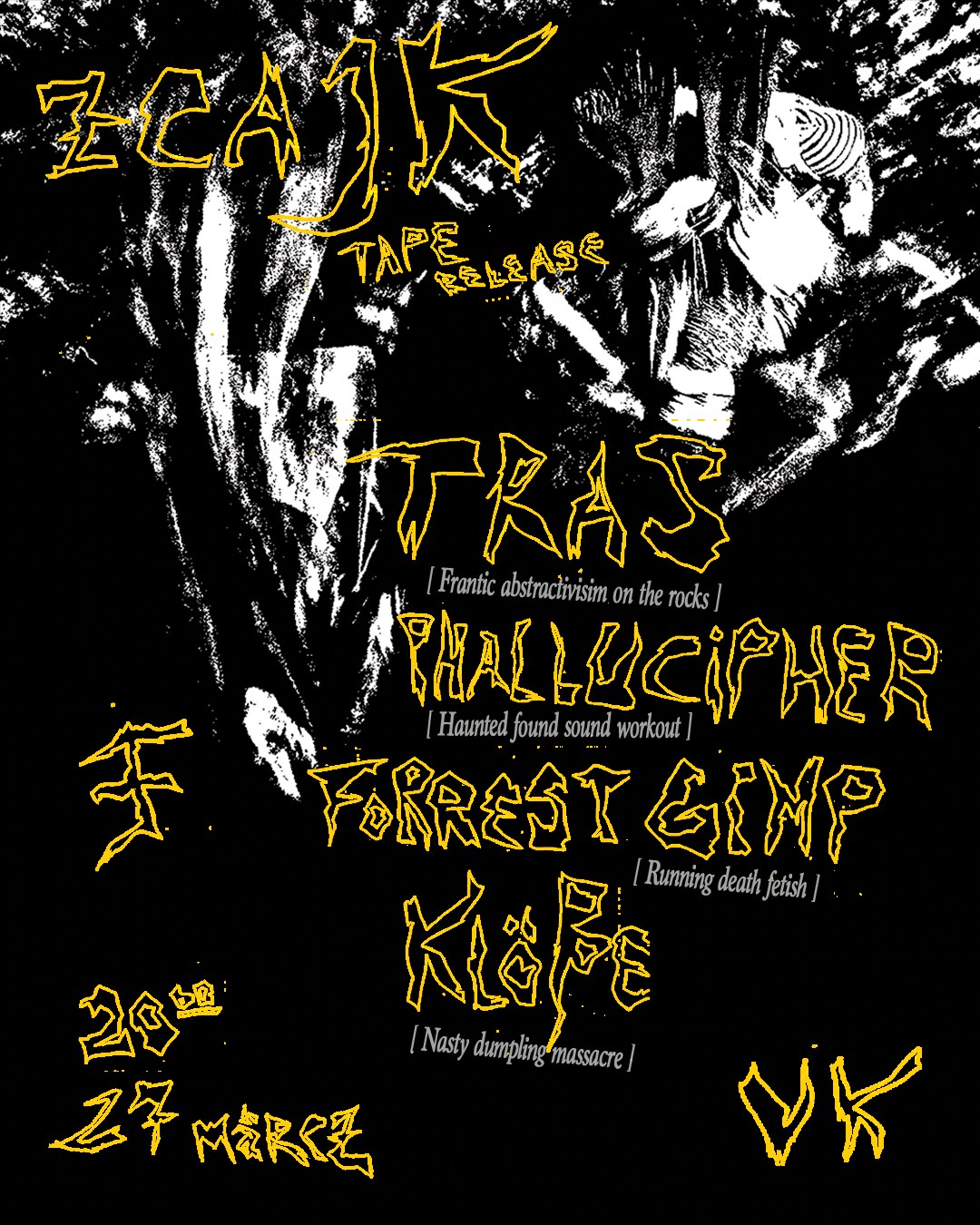 Am Freitag, den 27. März, lädt das Duo TRAS – Teresa Riemann und Asja Skrinik – zur Release-Show ihres neuen Tapes “ZCAJK” (Edelfaul Recordings) in den Berliner Toxic Garden. Ab 20 Uhr öffnen die Türen, das Programm beginnt um 21 Uhr mit Auftritten von Forrest Gimp, Phallucipher, TRAS selbst