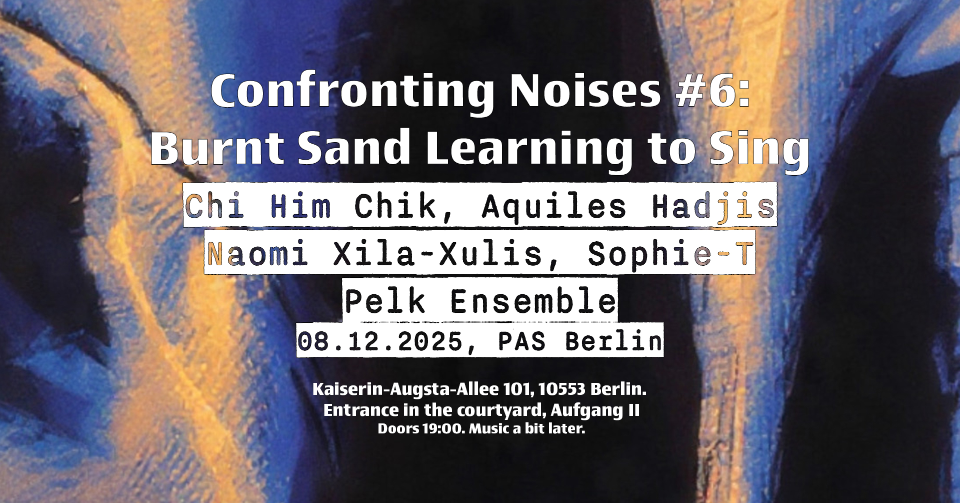 Am 8. Dezember findet im Petersburg Art Space in Berlin die sechste Folge der von aNoise kuratierten Reihe “Confronting Noises” statt. Im Zentrum steht die Premiere des Albums “Burnt Sand Learning To Sing” von Chi Him Chik, Aquiles Hadjis und Aiii. Das Trio präsentierte einen Dialog von Saxofon, Elektronik und Listening Machine, bei dem die KI laut Programmtextschrittweise improvisatorische Fähigkeiten entwickelte und auf die menschlichen Spieler reagiert.