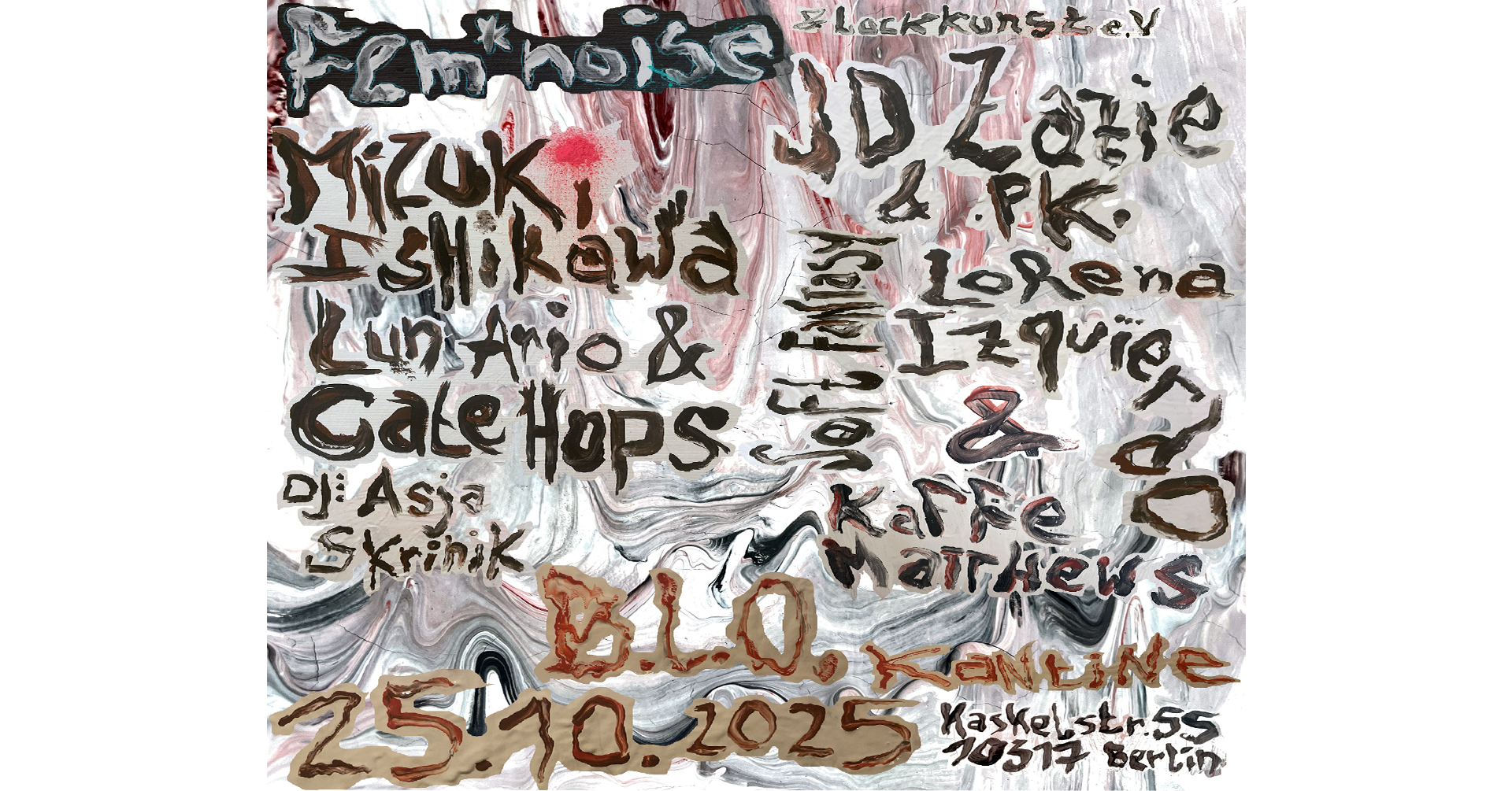 Am Samstag, den 25. Oktober, kehrt die Konzertreihe FEM*NOISE in die B.L.O.-Kantine auf dem Gelände der B.L.O.-Ateliers zurück. Das feministische Netzwerk für experimentelle Musik bleibt seiner Linie treu und veranstaltet nicht nur einen weiteren Konzertabend fern aller Genrekonventionen, sondern auch so etwas wie einen Raum gemeinsamer Erfahrung und klanglicher Selbstermächtigung.