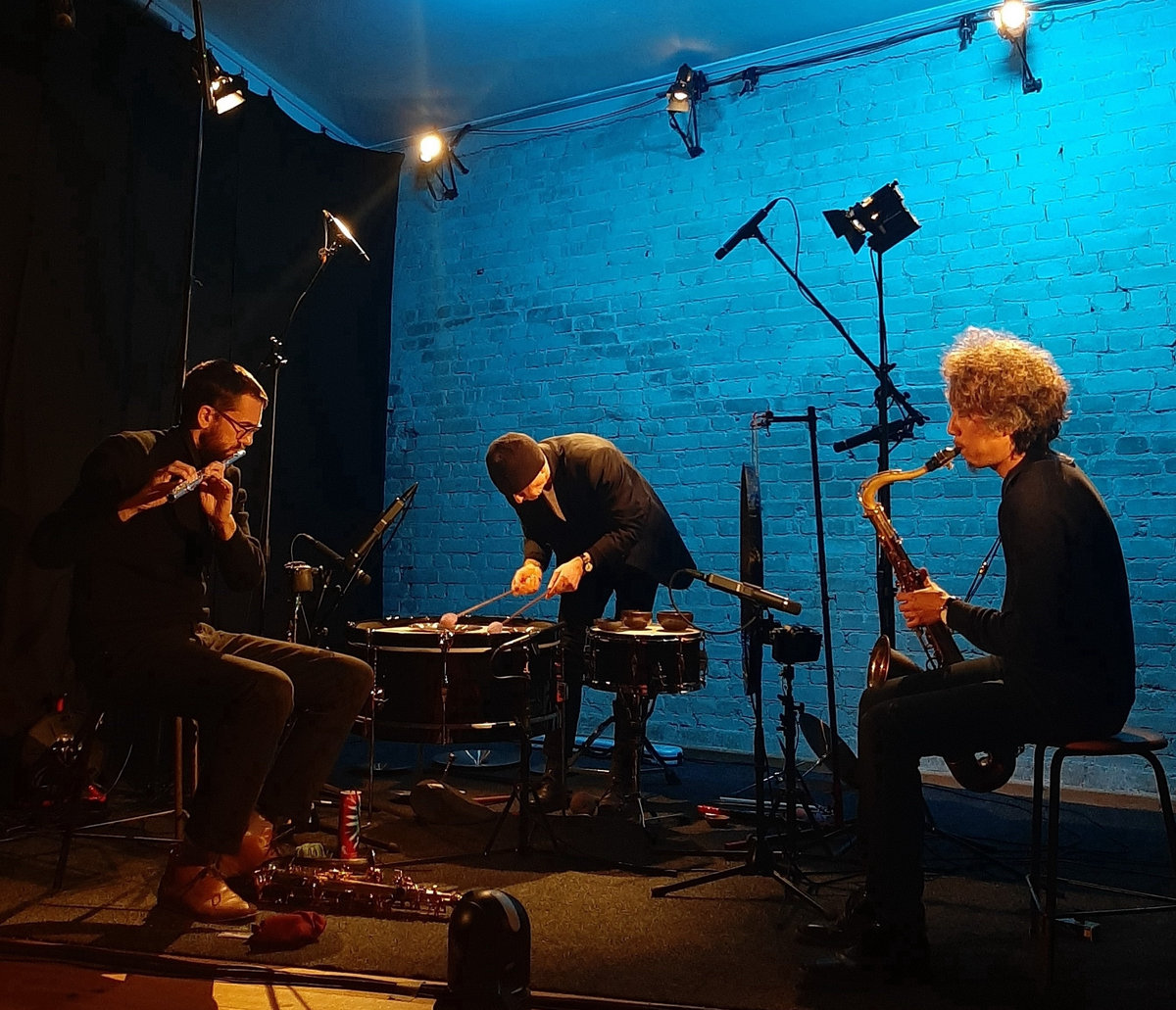 Vor Kurzem erschien mit “Quark” das neue Album des Trios Flinn Monchocé Kim bei Creative Sources. Das in Berlin ansässige Ensemble vereint den amerikanischen Perkussionisten Stephen Flinn, den französischen Altsaxophonisten und Flötisten Sylvain Monchocé sowie den südkoreanischen Tenorsaxophonisten Jung-Jae Kim.