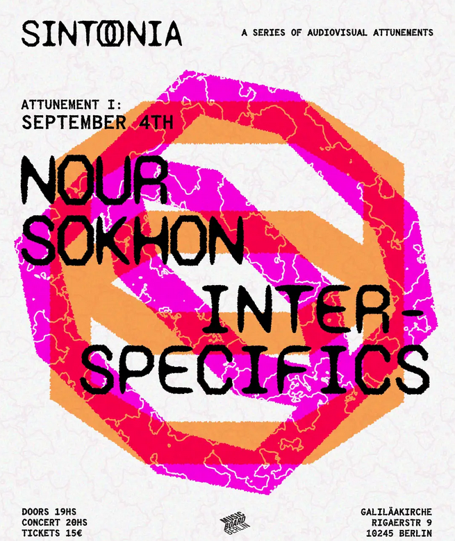 Mit dem Doppelkonzert von Nour Sokhon und Interspecifics beginnt am 4. September in der Berliner Galiläakirche die neue Reihe “Sintonia”. Die Serie widmet sich Begegnungen zwischen Klang und bewegtem Bild, in denen Künstlerinnen und Künstler unterschiedlicher Hintergründe Verbindungen eingehen und den Kirchenraum als Resonanzkörper für ihre Experimente nutzen. Nour Sokhons audiovisuelle Performance verbindet Stimmen, Field Recordings und generative Klangprozesse mit immersiven Bildern. Inhaltlich kreist ihre Arbeit, die wir bereits anhand ihrer Kollaboration mit Stefan Christoff vorgestellt haben, um Migration, Erinnerung und Transformation – Themen, die sich in vielschichtigen Überlagerungen von Klang und visuellen Strukturen entfalten.
