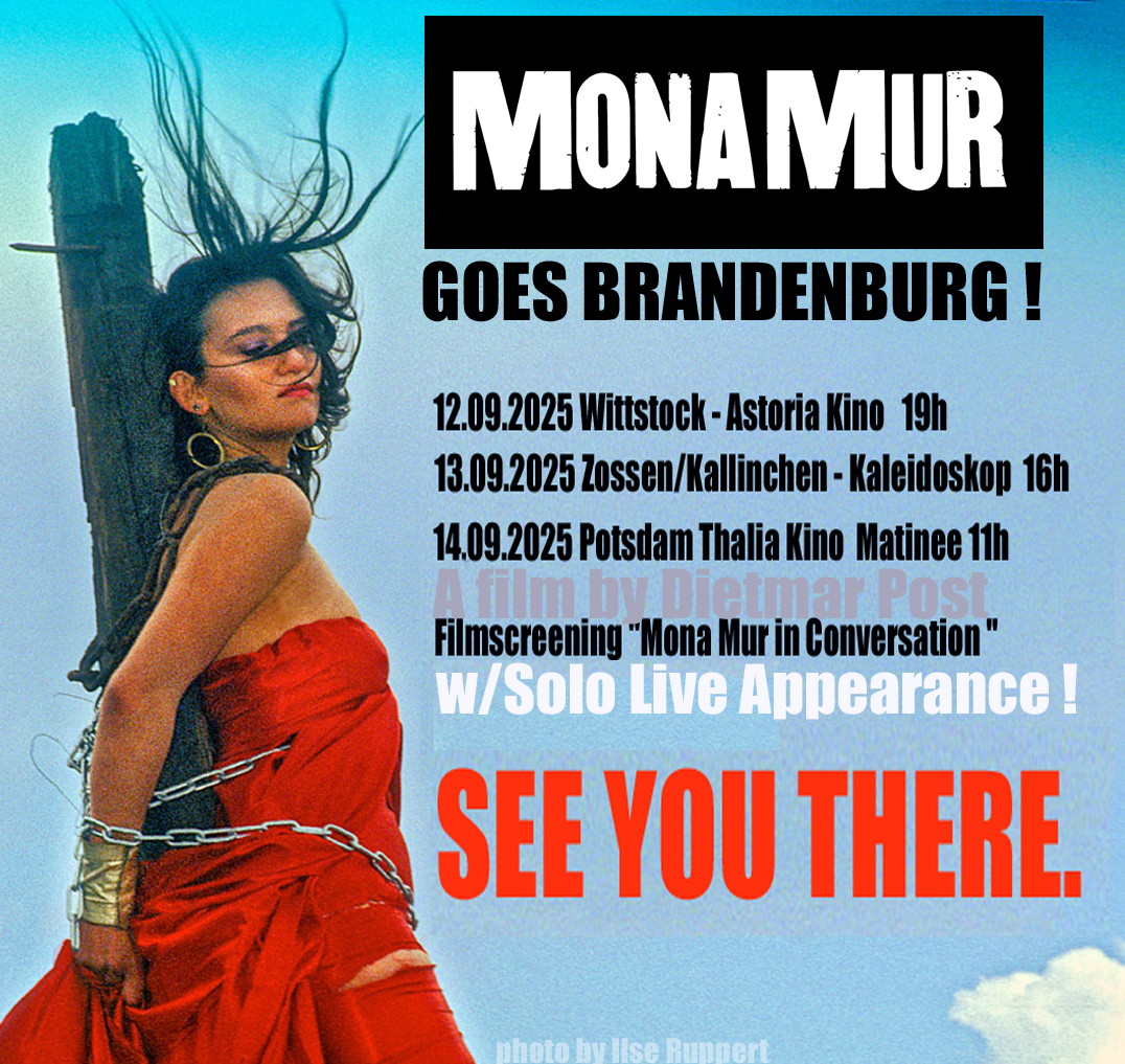 Der Film Mona Mur in Conversation von Dietmar Post begleitet die Karriere der in Hamburg geborenen Sängerin und Komponistin Mona Mur. Er wird im September in drei Brandenburger Kinos gezeigt, jeweils verbunden mit einem Solokonzert der Künstlerin. Wie Mona Murs Stammlabel Play Loud!, das auch den Film herausgebracht hat, schreibt, zeichnet der knapp neunzigminütige Film Murs Weg von der westdeutschen Underground-Postpunk-Szene der frühen 1980er Jahre bis hin zu ihrem heutigen künstlerischen Spektrum nach.