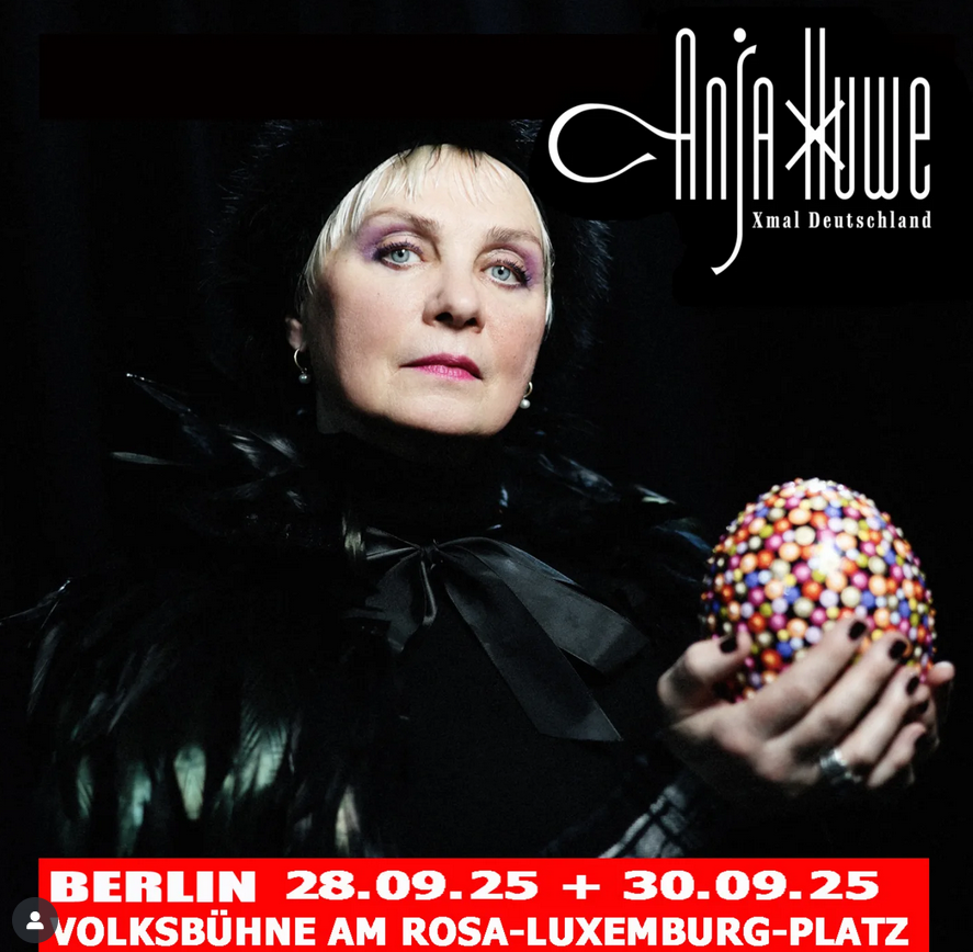 Nach über drei Jahrzehnten kehrt Anja Huwe, die Stimme der Hamburger Post-Punk-Band Xmal Deutschland, erstmals wieder live auf eine deutsche Bühne zurück, und dies gleich zweimal im Hauptsaal der Berliner Volksbühne. Im Zentrum steht ihr aktuelles Soloalbum “Codes”, das sie gemeinsam mit Mona Mur geschrieben und produziert hat. “Codes” erschien bei Sacred Bones Records (New York), zeitgleich mit Wiederveröffentlichungen früher Xmal-Stücke, und markiert die Rückkehr einer Künstlerin, deren Abwesenheit in der Musik-Community schmerzlich spürbar war.